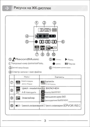 | 3. Формат записи | Стерео, WAV/MP3. |